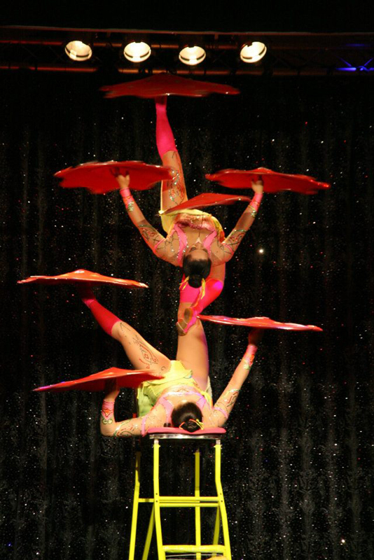 Female performers perform jaw-dropping acrobatics, hand-balance tricks and impossible moves