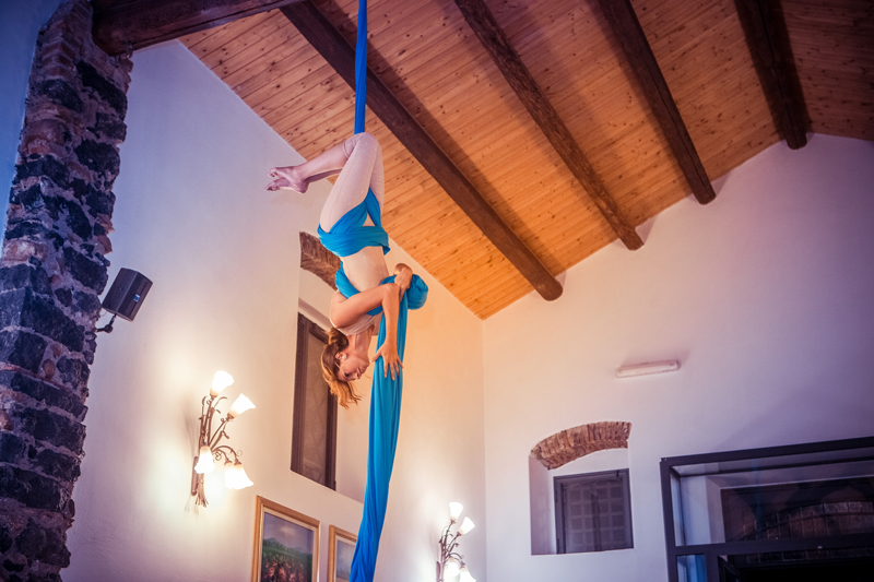 Our highly talented and professional trained aerial silk performer started her career as a gymnast at a young age. During her career as an athlete, she developed extraordinary technical skills and discipline. This versatile artist also practiced belly dancing for five years before discovering her passion for aerial disciplines. Since then, she has participated in various theatre productions and captivated guests at weddings and other live events.