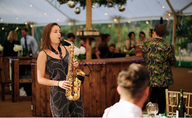 Choose from our flexible 3-5 piece ensemble options to suit your event's size and vibe, including female DJ, sax player, violin and vocal
