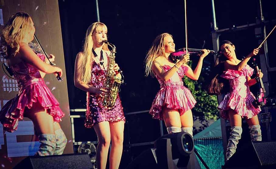 Whether you’re looking for an amazing stage show or a tailored performance for a special VIP event Female Electric Strings will deliver. They can offer a dazzling electric string quartet, trio, duo or solo performer or even provide a full orchestral electric stage show with up to 12 performers. In addition, the girls offer a saxophonist, percussionist or a DJ to help make your special event even more unique.