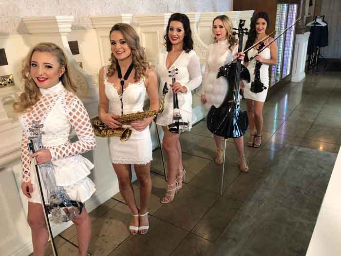 Female Electric Strings are one of Europe’s fastest growing all girl electric string groups. This stunning, attractive and versatile all female electric string ensemble perform world class entertainment at high class weddings, major corporate events, prolific product launches alongside a wide variety of VIP events and special occasions. Delivering high energy electric string music Female Electric Strings will customise their performance for your important and unique event.