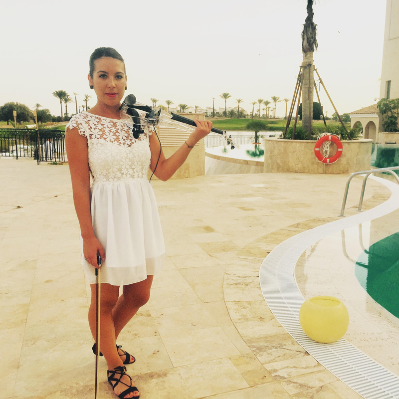 Offers both stage and roaming performances, can play with an LED bow and is happy to share the stage with other artists such as DJs