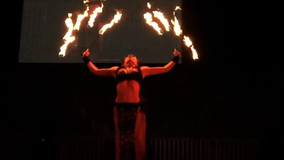 Our Germany-based fire dancer also offers LED hula hoop shows, belly dancing contact juggling and can be booked a Fusion Fire Duo.
