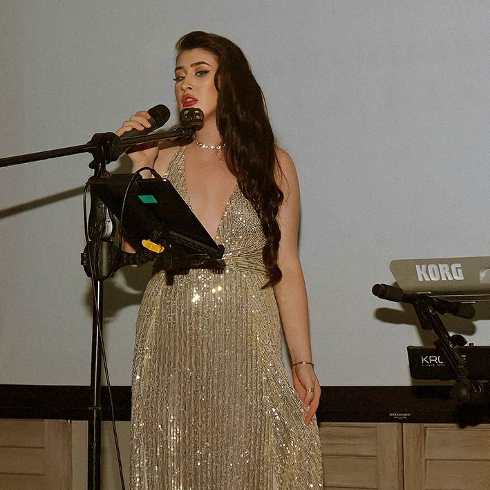 Book our female jazz singer for galas, residencies, parties, weddings and mall events