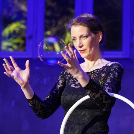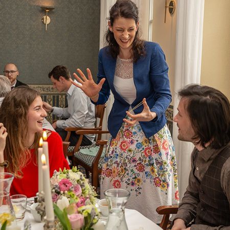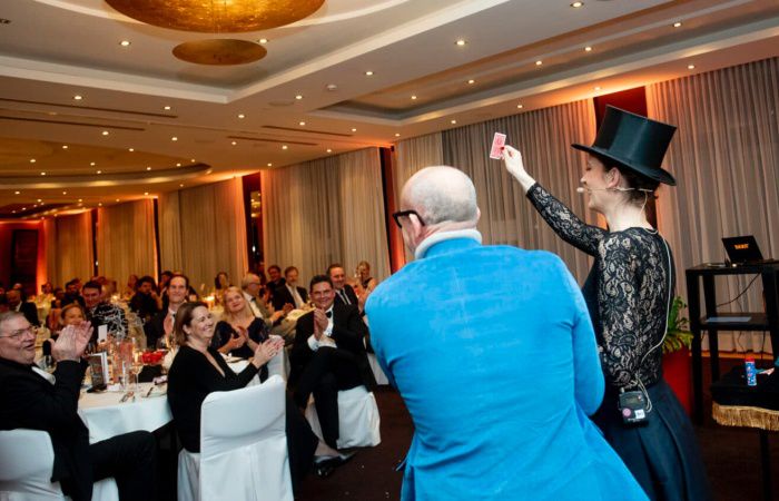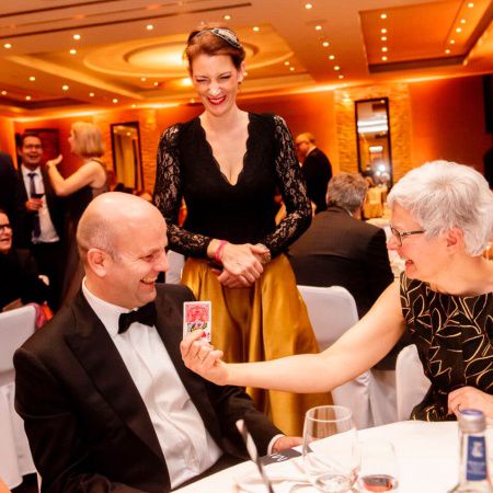 " For the second time, [she] has captivated not only us, but also our customers, colleagues and friends at our annual summer party. With her close-up magic, she has fascinated, convinced skeptics and even taught one or the other trick. Everything worked smoothly. The organization was also uncomplicated! There was even a trick specially developed for the Kopfarbyte. You can definitely tell the fun of the thing. She managed to bring people together and entertain them in a relaxed way! "