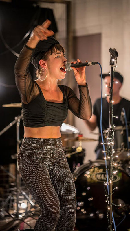 Our rapper is able to perform with a backing track or with her band for a more live feel