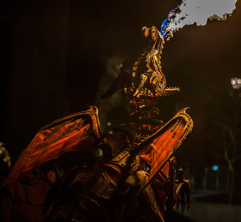 Fearsome dragon will light up any venue with a dazzling combination of fire and pyrotechnics