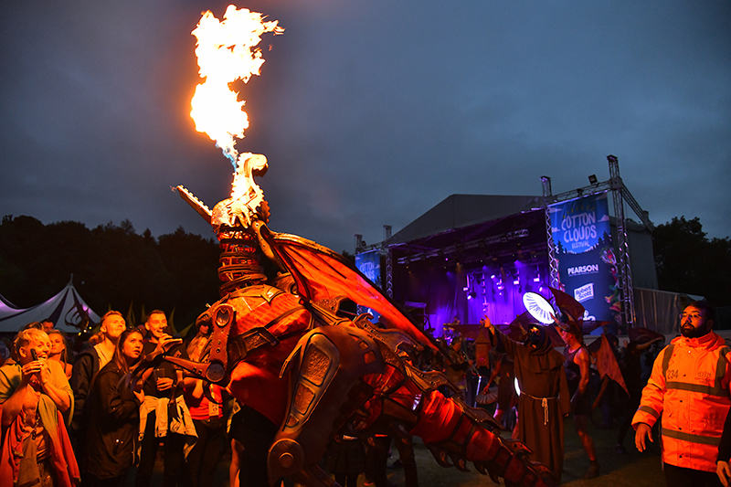 Sinister hooded, plague-masked stewards walk with the dragon through the astonished crowd as part of a captivating act