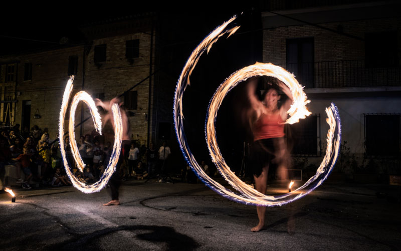 Dancing with fire is popular entertainment option for a variety of events including weddings, festivals, street celebrations, galas and many more! Our Italian fire performers have plenty of experience entertaining audiences of all ages with their fire breathing, fire twirling and spiral fire dancing.