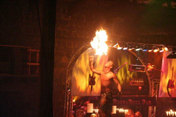 Demonstrate amazing fire breathing, eating, juggling, spinning and more