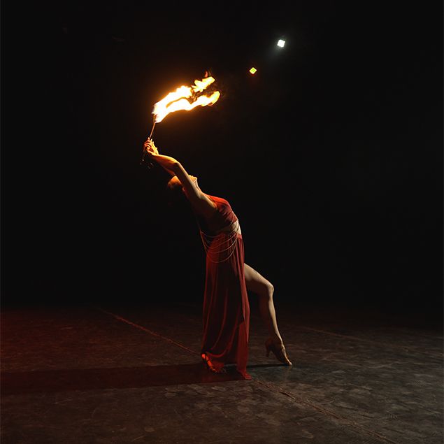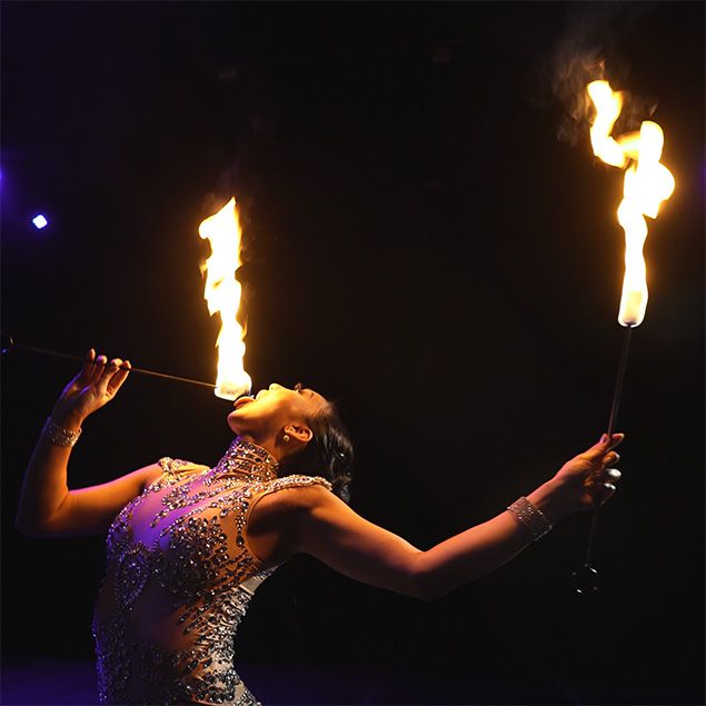 Her fire-eating act combines thrilling danger with elegant, mesmerizing artistry, leaving audiences captivated and breathless with every performance