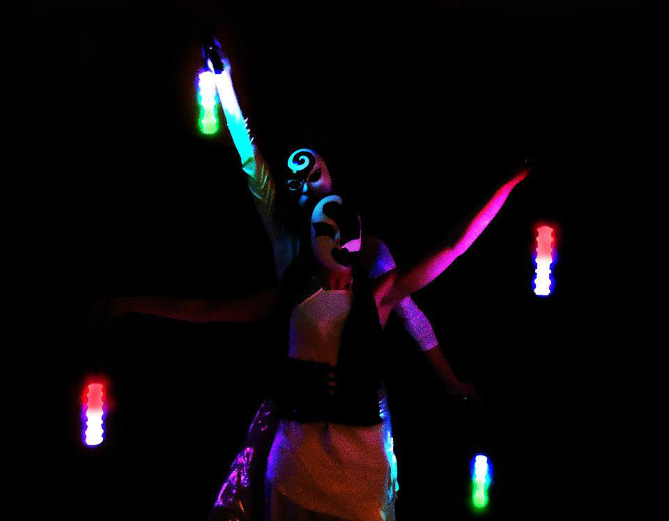 Audiences will watch in fascination as masked bodies emerge from the darkness dancing to a tune of magical melodies. As the performance progresses many colour changing lights burst into life chasing and merging into each to create a spell binding show of brilliant shapes. The show incorporates a range of tools including juggling clubs, balls and poi. This enthralling and immersive show will transport audiences to a timeless space somewhere suspended between the past and the future. The show can be adapted to suit your needs and is suitable for all kinds of events including festivals, theatres, corporate functions, opening and closing ceremonies, street festivals, private parties and much more.