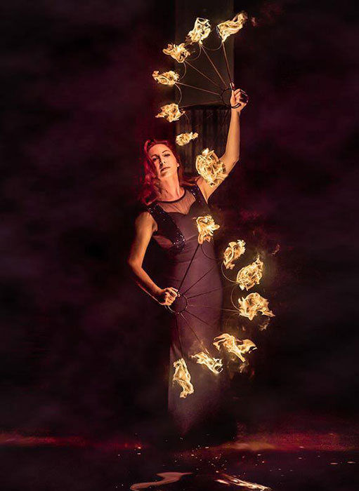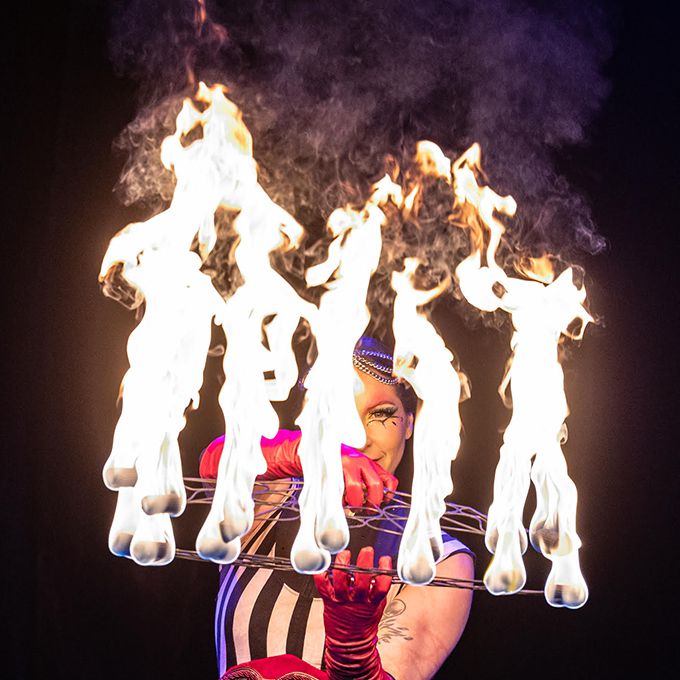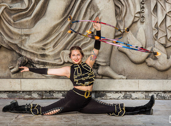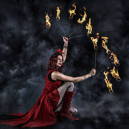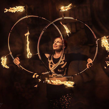 Performing seemingly impossible fire hula hooping with skill and dexterity, this fire act knows exactly how to hold a crowd's attention. Providing the perfect circus entertainment for night events, corporate functions, medieval festivals and product launches, our skilful fire dancer is guaranteed to wow your crowd and stimulate their senses. Able to adapt her show to suit a variety of themes, our hoop artist’s shows can range from a pirate knees up to a steamy burlesque routine.