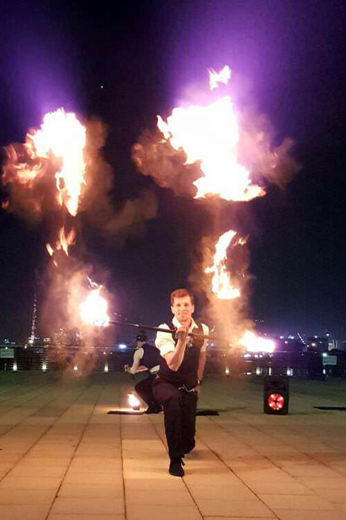 Our Jazz fire show are best booked to perform in darkness to make the flames stand out.