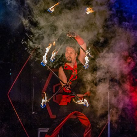 Based in Frankfurt, our professional fire juggler is available for private and corporate events across Germany and internationally