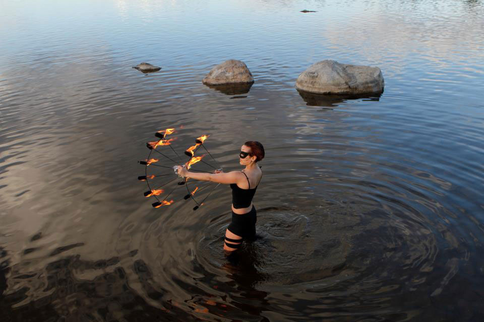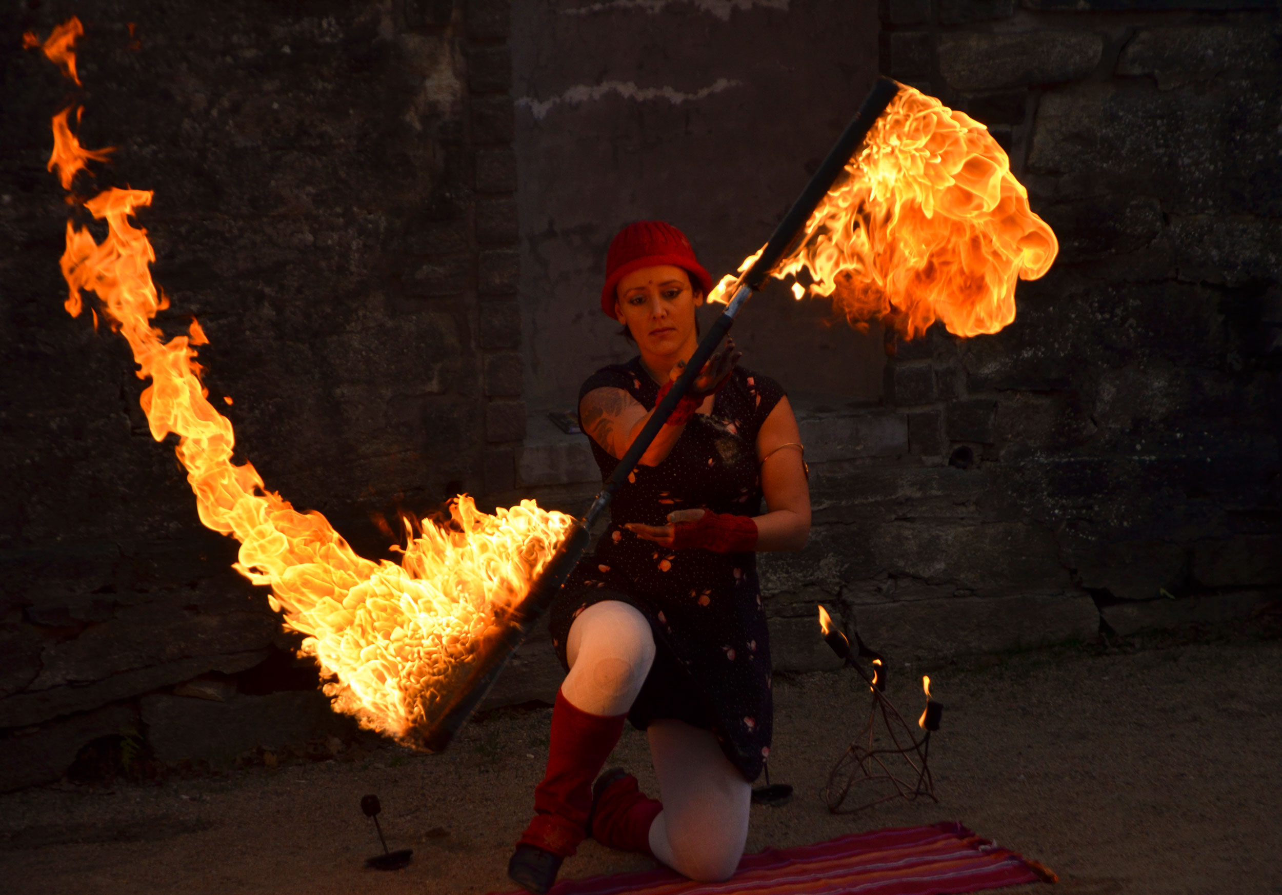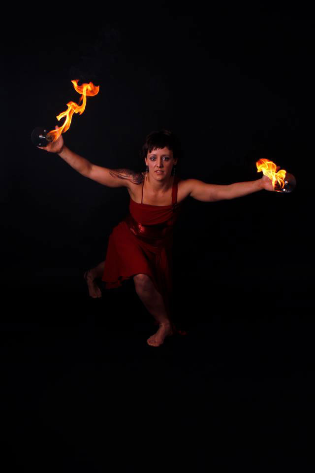 Using instruments that include burning sticks, poi, hoops, swords and fans, she can also perform incredible explosions and magic with a record number of 21 flames!