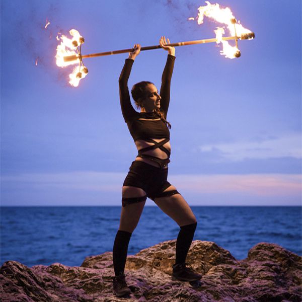 Our artist has taken her fire show beyond the Spanish borders and has performed in festivals such as Burning Man or StartGate in Hawaii