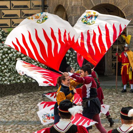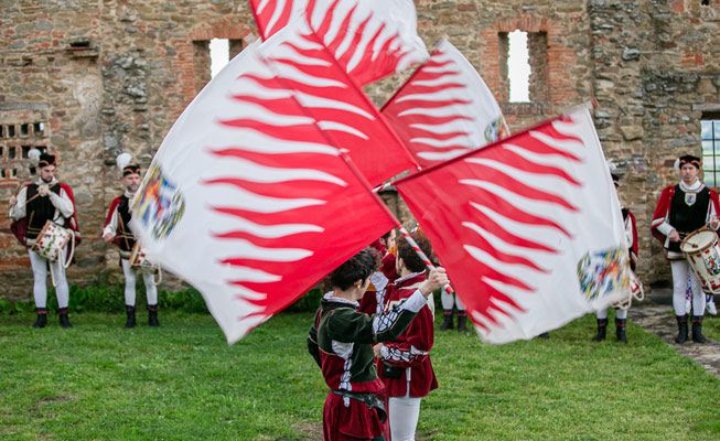 Dressed in traditional medieval costumes, our Flag Wavers give guests a glimpse into the Tuscan Middle Ages in a fun and entertaining showcase