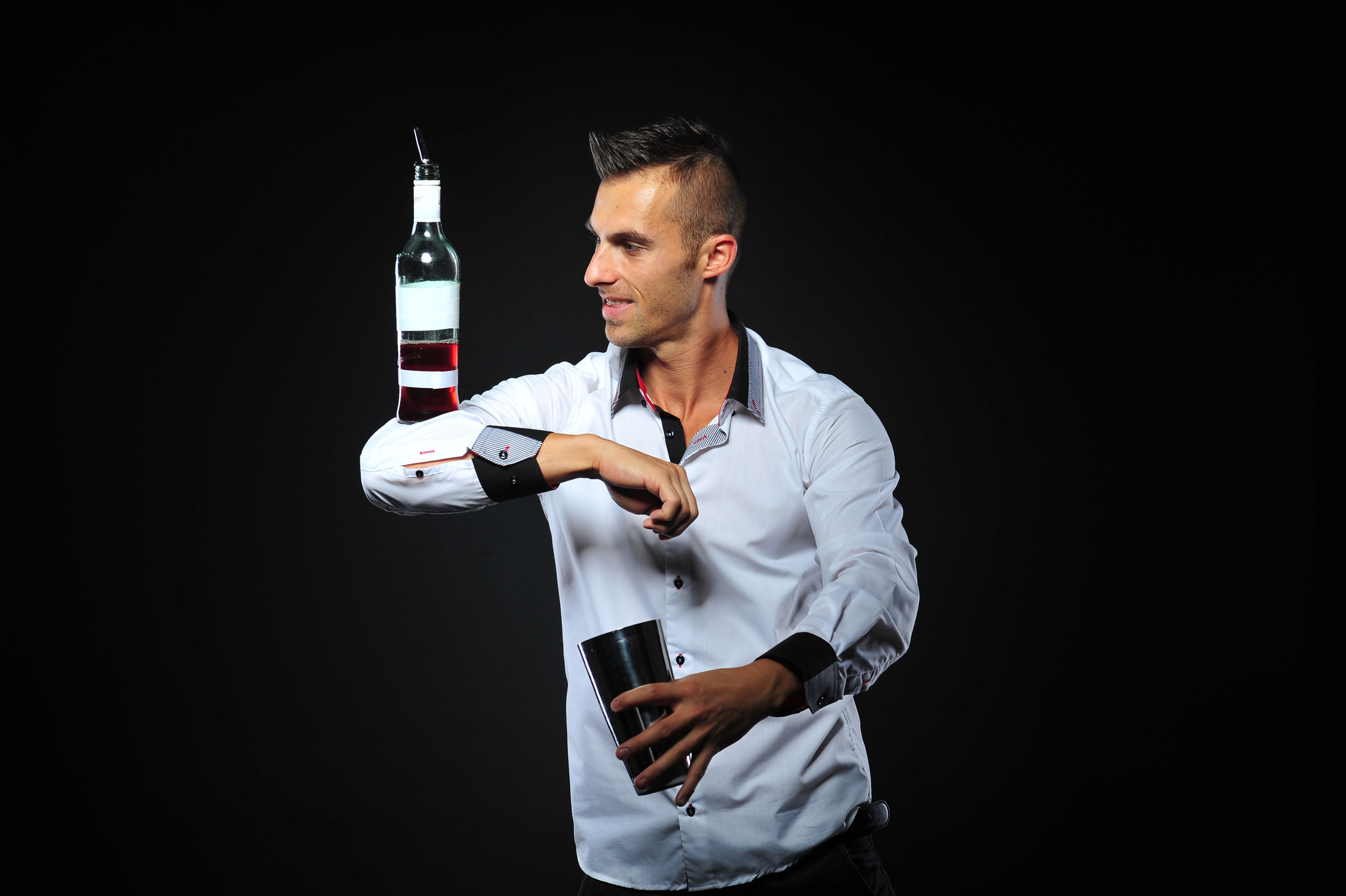 Bartending since 2007, cocktail mixologist, entertainer and professional flair bartender Norbert entertains audiences with the manipulation of bar tools and bottles in dazzling ways.