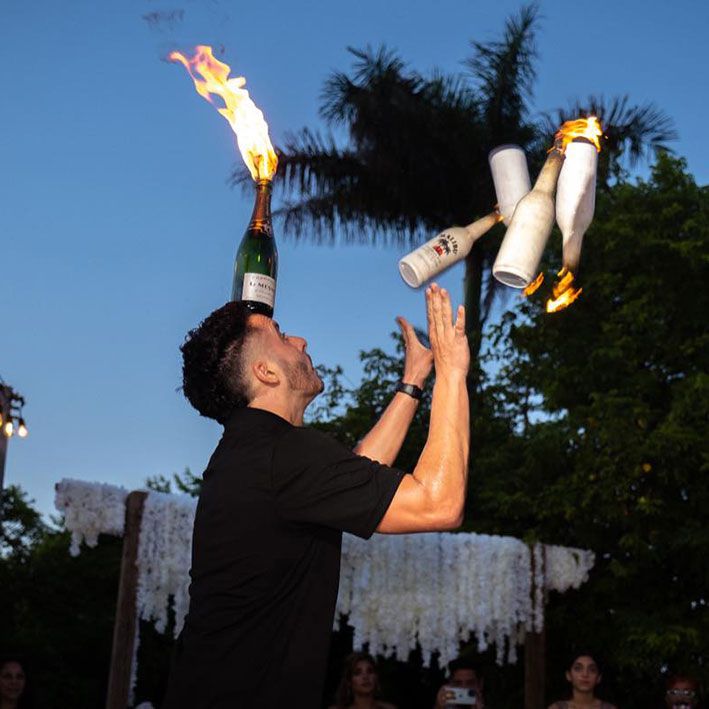 Based in Fort Lauderdale, his entertainment sets with fire or LED last for up to 12 minutes and is available for events worldwide
