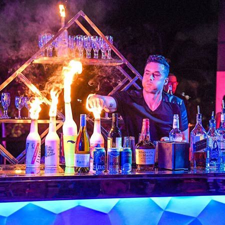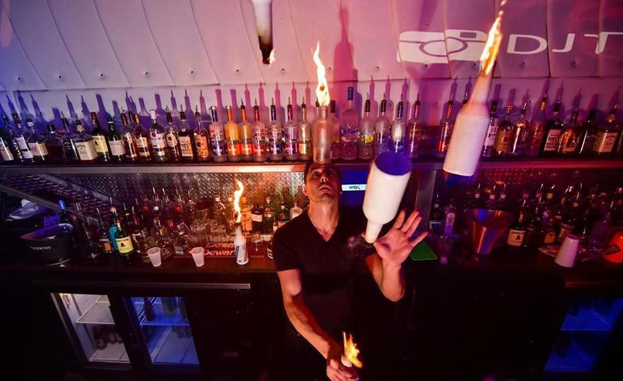 He can flip bottles, shakers and straws and can even incorporate LED bottles or fire into his mixology performance