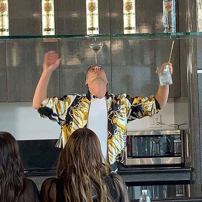 He has shown off his skills on MTV's Mix Master show, showing off his bar service with style
