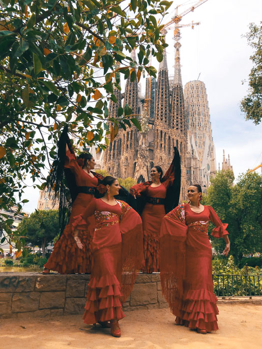 Dressed in majestic long-tailed flamenco dresses and traditional black matador suits, our dancers will step onto the stage with energy and determination. Accompanied by live flamenco music played by Spanish guitarists, flamenco box players and singers, among others, this flamenco dance troupe will perform dramatic tap dance choreographies that audiences won’t help but love and applaud enthusiastically.
