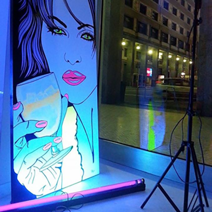 Able to work on furniture, showrooms, discos, bars, shops and bespoke pieces of art, this painter can adapt to different occasions