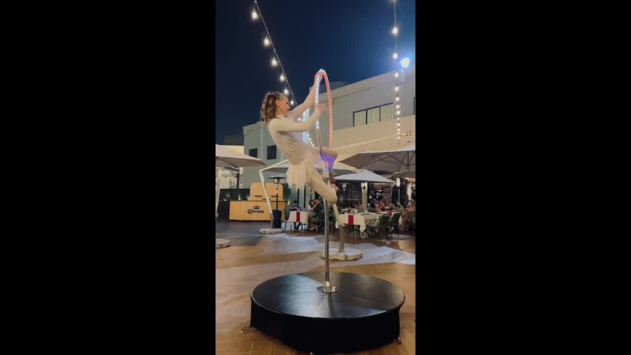 Based in Dubai, our Freestanding Aerial Hoop Artist is available for booking across the UAE and worldwide