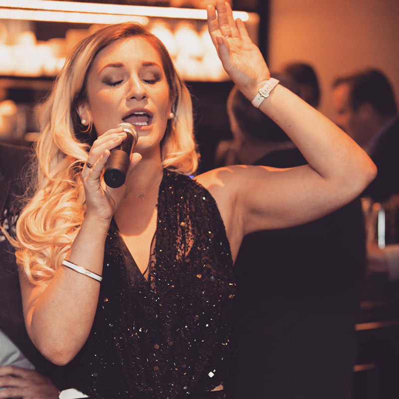 Showcasing a variety of career highlights, our skilled female vocalist has performed for Sir Alex Ferguson twice already, as well as dazzled at three of Mike Summerbee's annual Christmas luncheons. Our phenomenal swing singer has also utilised her amazing live performance in front of Russell Watson, Harold Riley, and a variety of other dignitaries. Keeping guests intoxicated by her special music show experience, our intricate cover performer will easily compliment your special event by creating the perfect bespoke live performance. The ideal musical option for private events, corporate functions, gala dinners, drink receptions, theatre performances, music festivals, and much more.