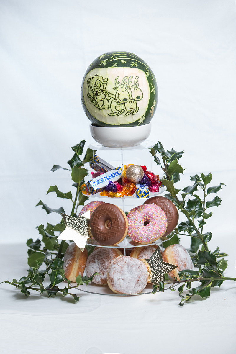 This Food Sculptor Artist UK makes outstanding designs out of watermelons and other fruit and vegetable sculptures including butternut squash, pears, strawberries, apples and more. Watermelon fruit carvings can be shaped into made to order fruit bowls which you can fill with alcohol! Watermelon designs are this food sculptor specialism; her rose themed watermelon carvings look and smell divine.