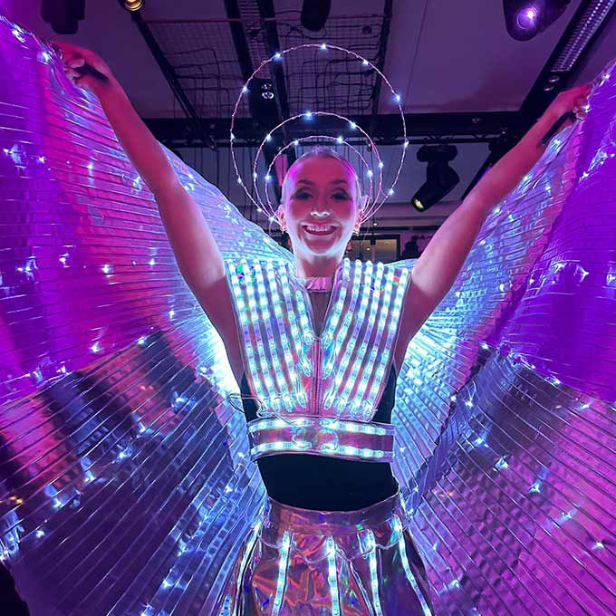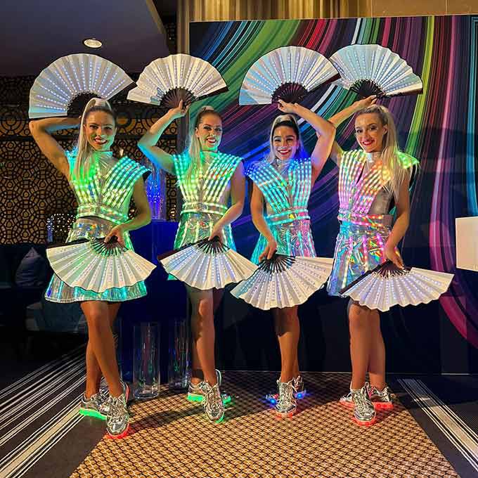 Illuminate your event with our bright and beautiful LED performers, who wear costumes that offer multiple LED effects and a range of vibrant colours