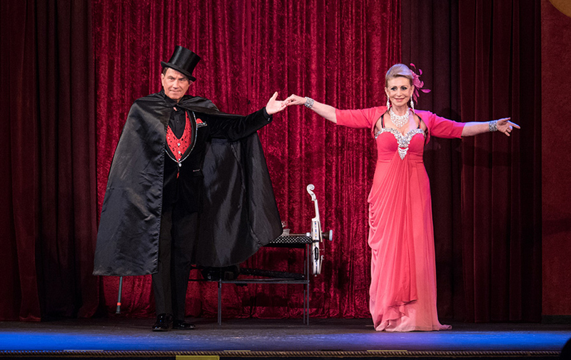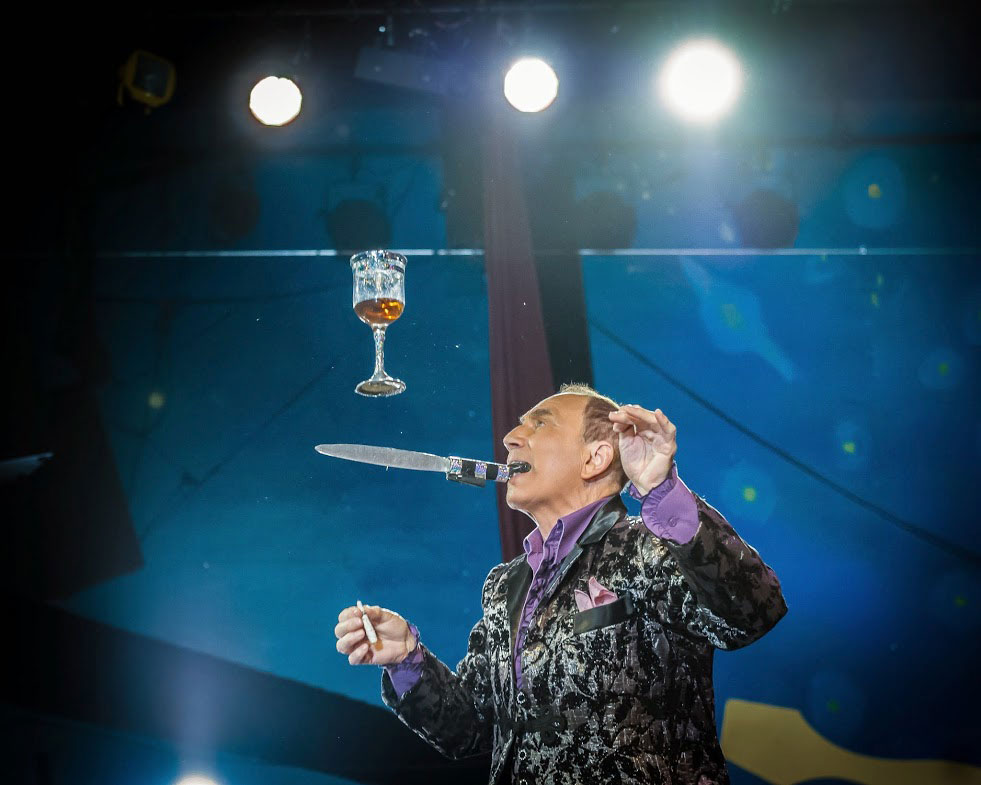 Elegantly dressed in a top hat and cloak, and assisted by a glamorous assistant, Gentlemen Juggler Freddy astonishes audiences with unbelievable tricks, balance and illusions.
