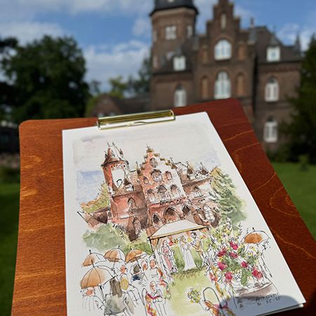 With spontaneous strokes, our German fashion artist captures the elegance of your event, offering personalised sketches your guests will treasure