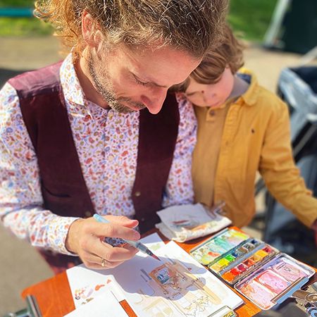 Booking this fashion illustrator means combining artistry with interaction, as guests watch their look transformed into expressive live portraits