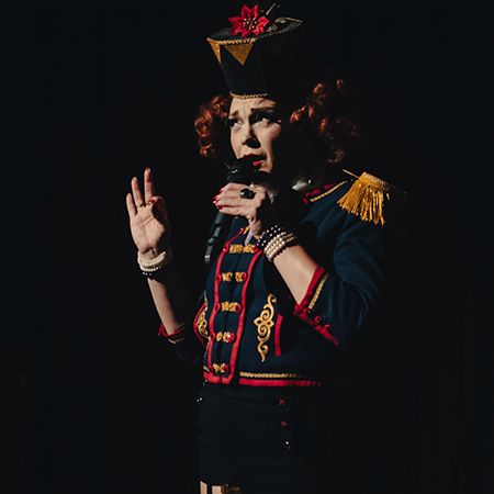 This fierce and fast-talking German-themed host is known for her sharp wit, 'Kafka kitsch comedy', and commanding stage presence