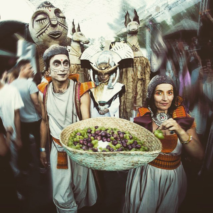 The Giant Ibizan Folklore Puppets deliver a walkabout and theatrical performance inspired by ancient mythologies, folklore and stories of the island of Ibiza. The multi-layered mythology of Ibiza has traces Phoenician, Roman, Moorish and Catalan cultures amongst several others and this is reflected in both the costumes and the performances. Their aim is to enchant and animate through simple visual performances.