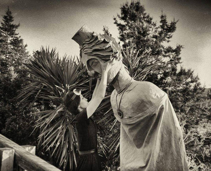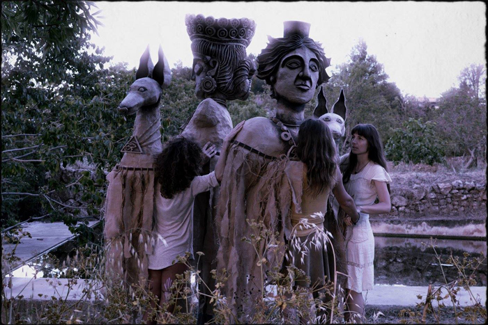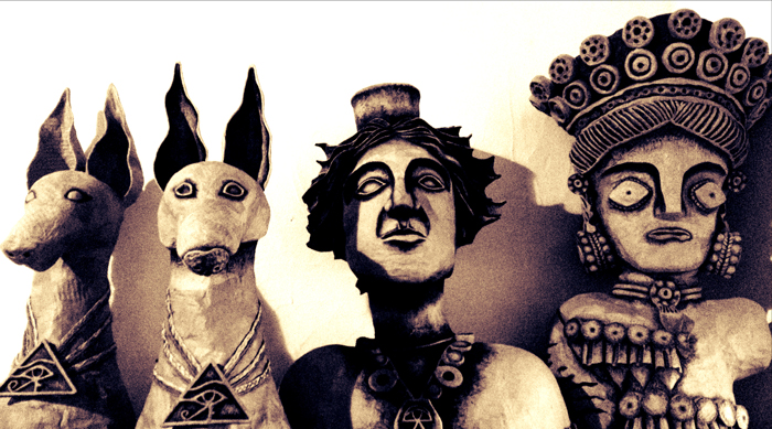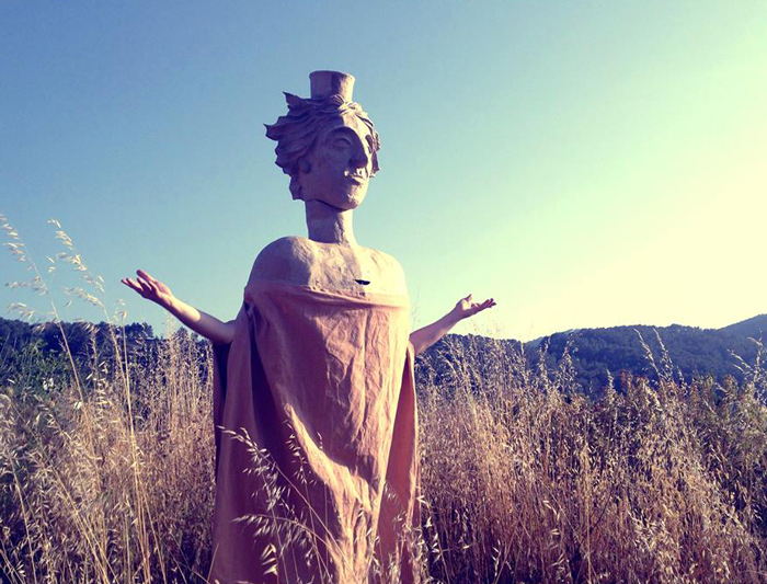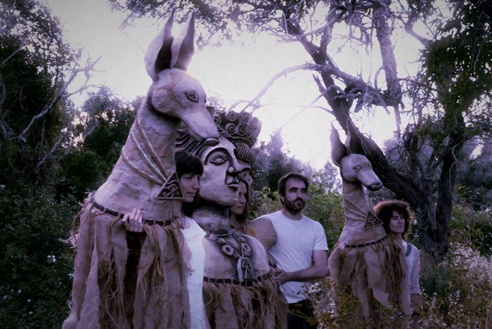 The walkabout act features giant puppets made from recycled materials using traditional craft processes. These incredible large mythical beasts are the goddess Tanit, the goddess Demeter, and two podenco hounds.