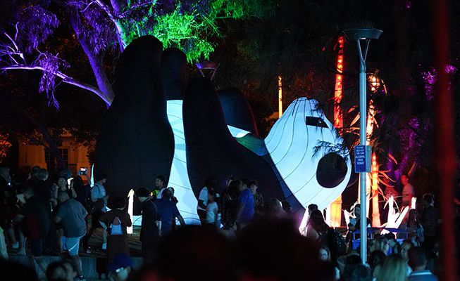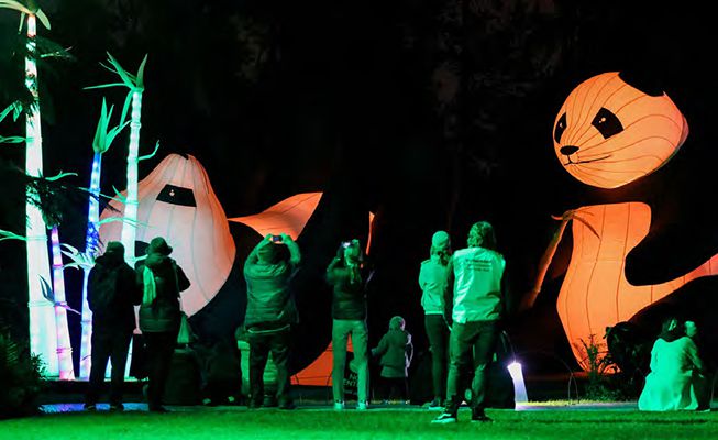 An immersive experience, the pandas are fitted with LEDs for nighttime displays that change colour as they move and play sounds around them
