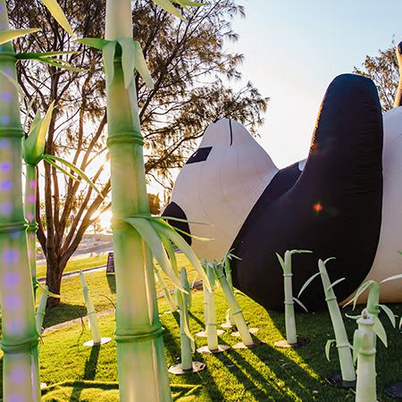 This adorable installation features two giant pandas who are over six metres high and are surrounded by giant, inflatable bamboo