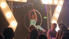 A ‘hangabout’ performance from an aerial act is also highly-suited to themed events such as enchanted garden, Las Vegas theme and other mystical and glamorous events. For a party where a centrepiece and a stage show are both desired, this solves the problem perfectly, as it can be used for both at different times.