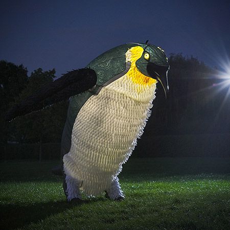 A perfect addition for nighttime events and festivals, our giant penguin is illuminated by LEDs and can also play soundscape from an onboard speaker