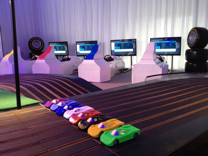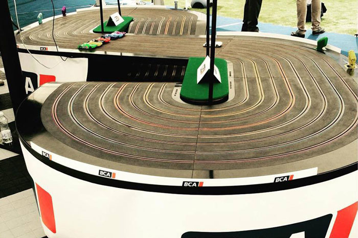 Don't hesitate to get in touch with our team of entertainment coordinators if you are interested in booking the giant Scalextric track for your next event