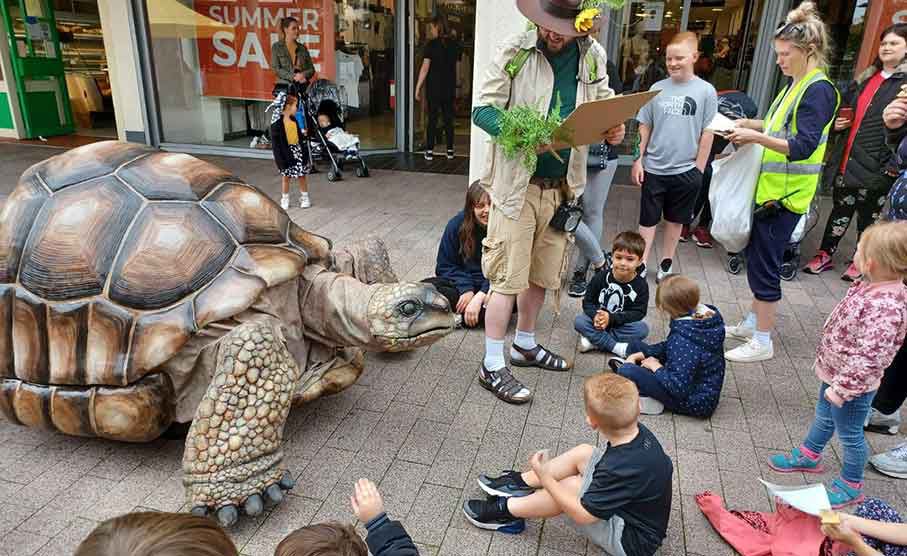 Based in the UK, our giant animatronic tortoise is available to entertain and educate at schools, activations and corporate events worldwide