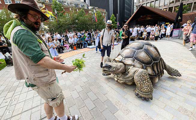 Life lessons from the wisest creature on the planet, our giant animatronic tortoise puppet comes with her knowledgeable handler