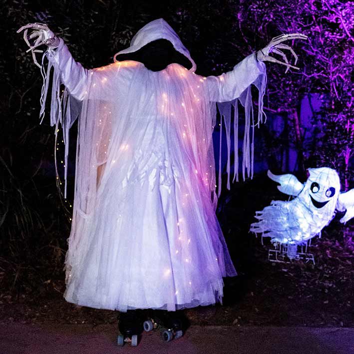 Our gliding ghoul will skate around your venue and surprise guests as he sneaks up on them with his claw-like fingers, when they least expect it