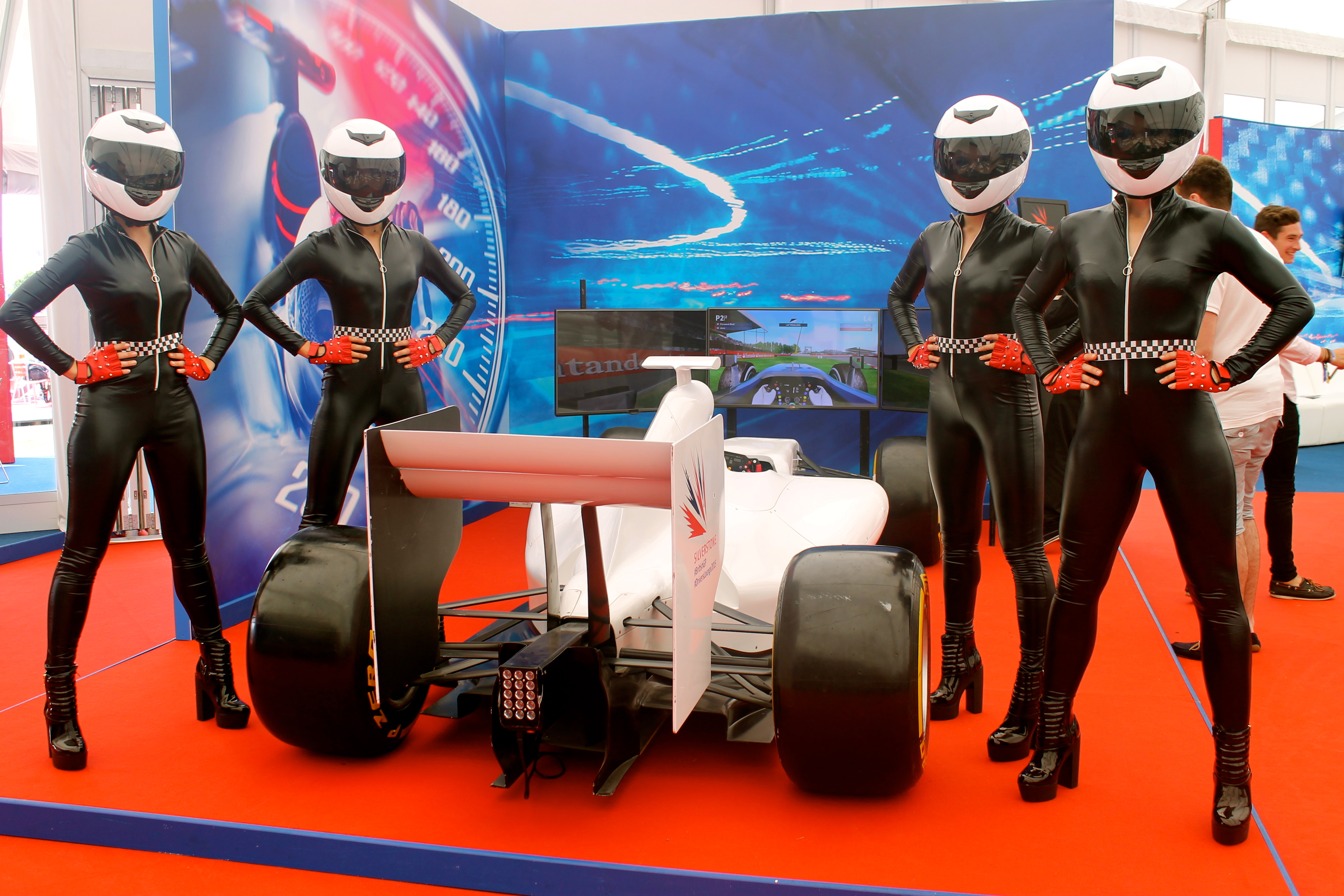 Especially created for the Grand Prix these female counterparts to Top Gear’s notorious driver ‘Stig’ will have hearts racing as they strut around your event!