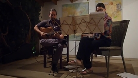 Plays memorable music on a beautifully romantic sounding acoustic guitar