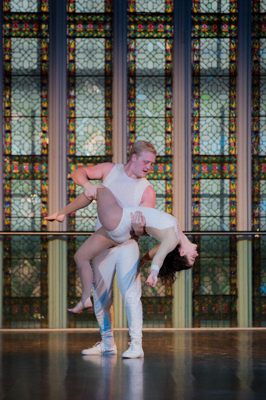 Dressed in elegantly simple embroidered white costumes, our acrobalance artists perform their stunning acrobatic choreography with aplomb.