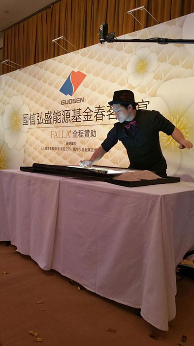 Offers real-time live sand animation at events with projected visuals or pre-recorded sand stories